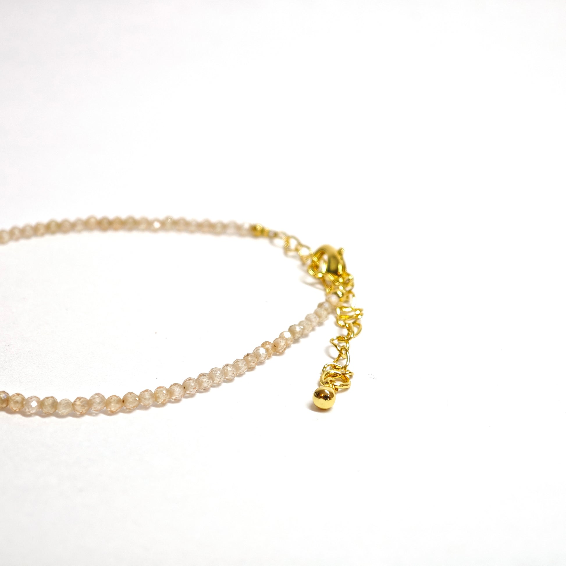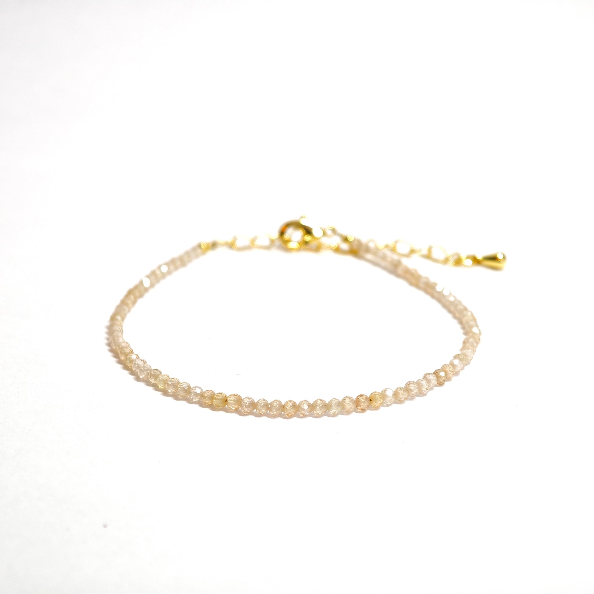 Des perles de zircone couleur champagne sont enfilées ensemble pour créer un bracelet qui respire une élégance douce et un éclat subtil.