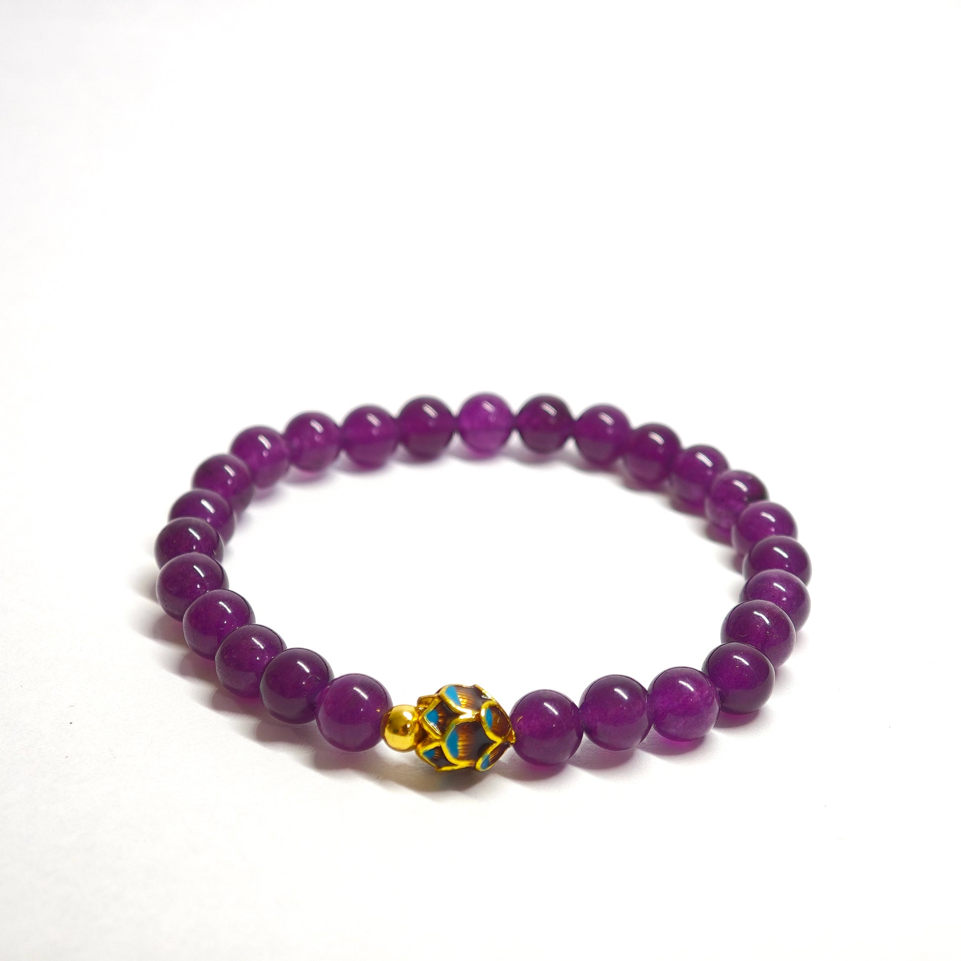 Gefertigt aus glatten, glänzenden Amethyst-Perlen, kombiniert mit einem feinen Cloisonné-Lotusanhänger – eine Verbindung aus meisterhafter Handwerkskunst und der Schönheit natürlicher Edelsteine.